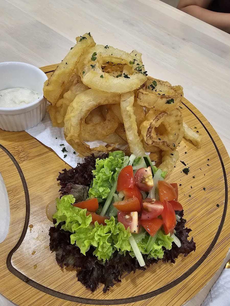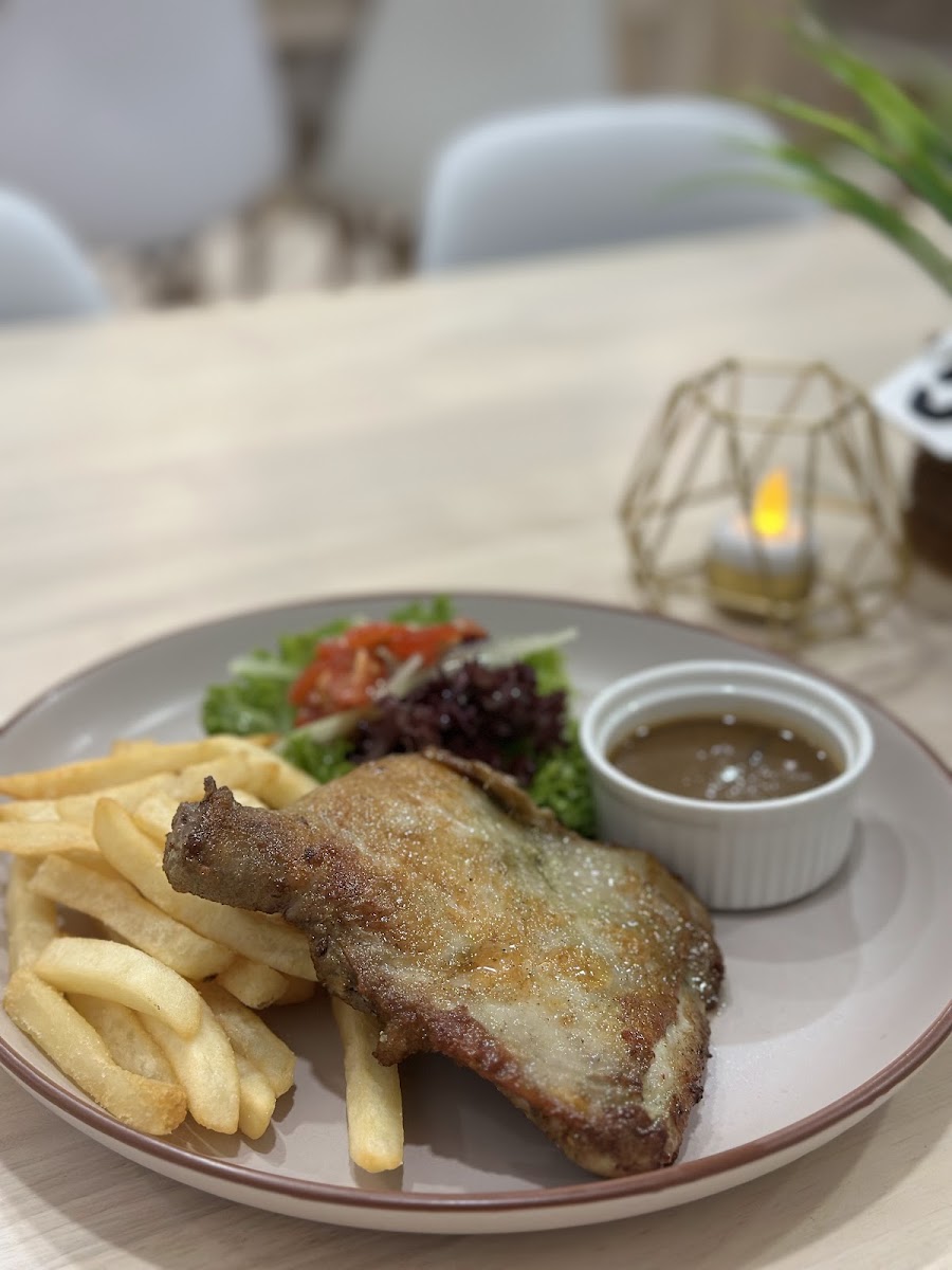Moving on to the chef's specials, you cannot miss the Signature Nyonya Laksa Pasta, a unique twist on traditional laksa, blending seafood angel hair pasta with an enticing homemade sauce that bursts with flavor. For those craving something crispy, the Fish Chop with Aglio Olio Pasta is a must-try, featuring battered talapia fish served alongside perfectly cooked aglio olio pasta and fresh salad - a dish guaranteed to tantalize your palate.